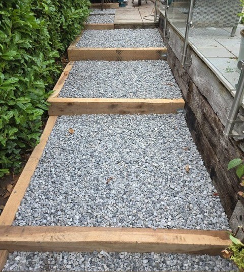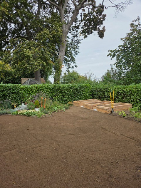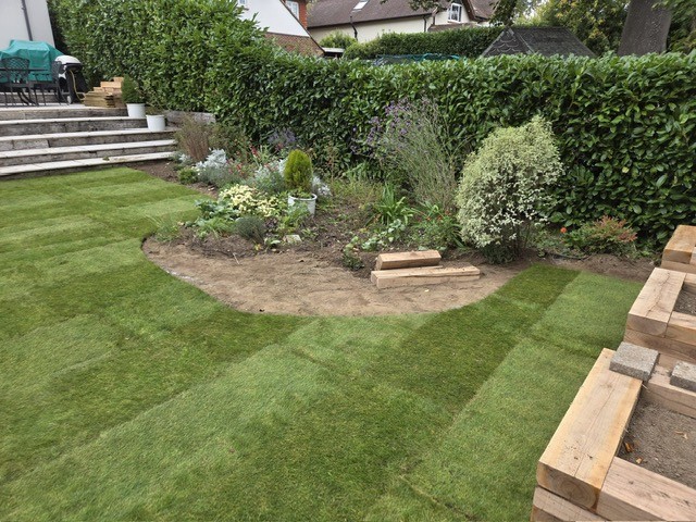 Phase 1: Redesign old garden layout to include installing raised planters, creating a sheltered area next to the shed, level and relay new lawn whilst creating a new pathway. Plant new shrubs and plants in the newly created flower beds.